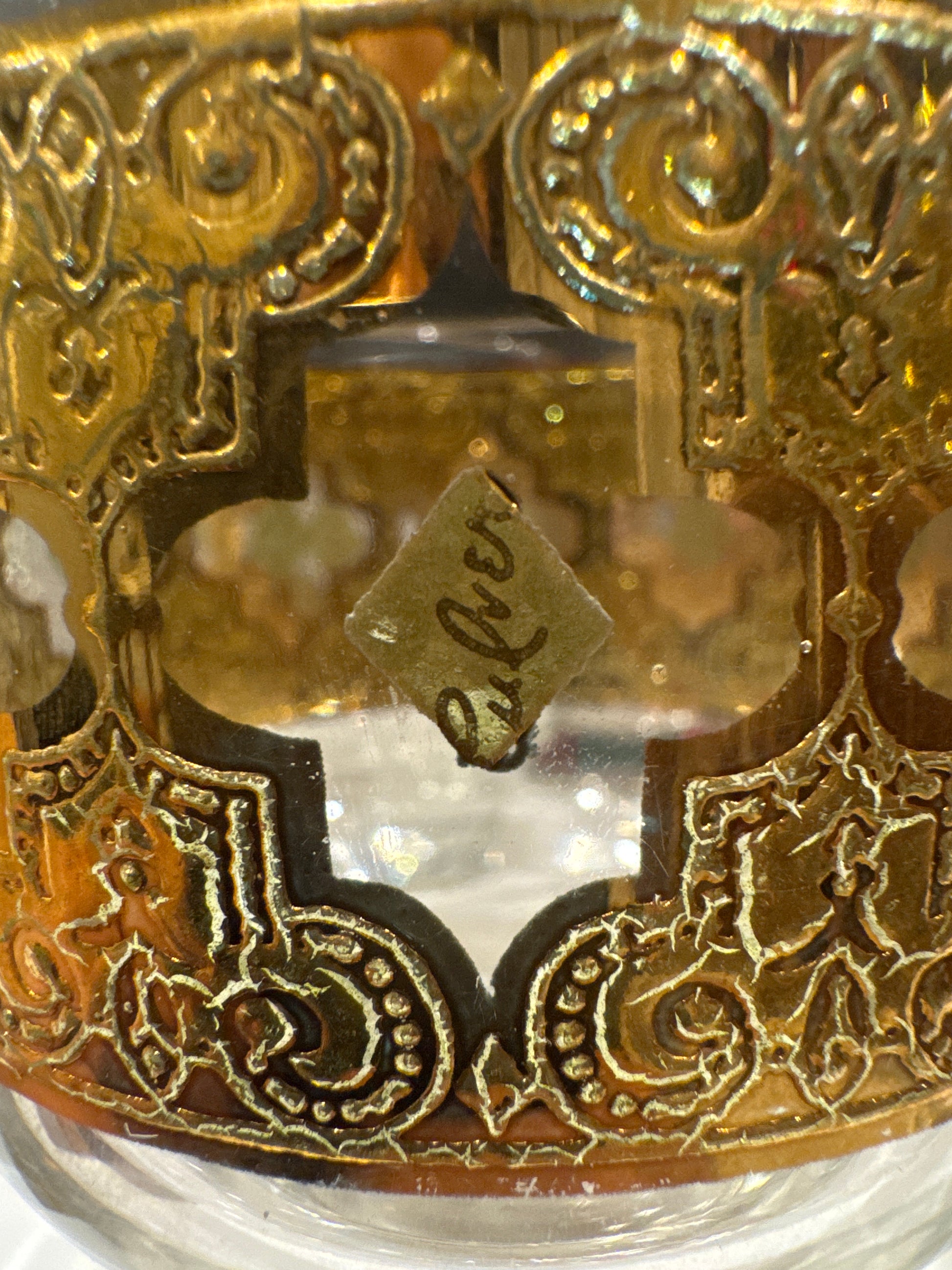 - Material: Clear glass with 22k gold overlay